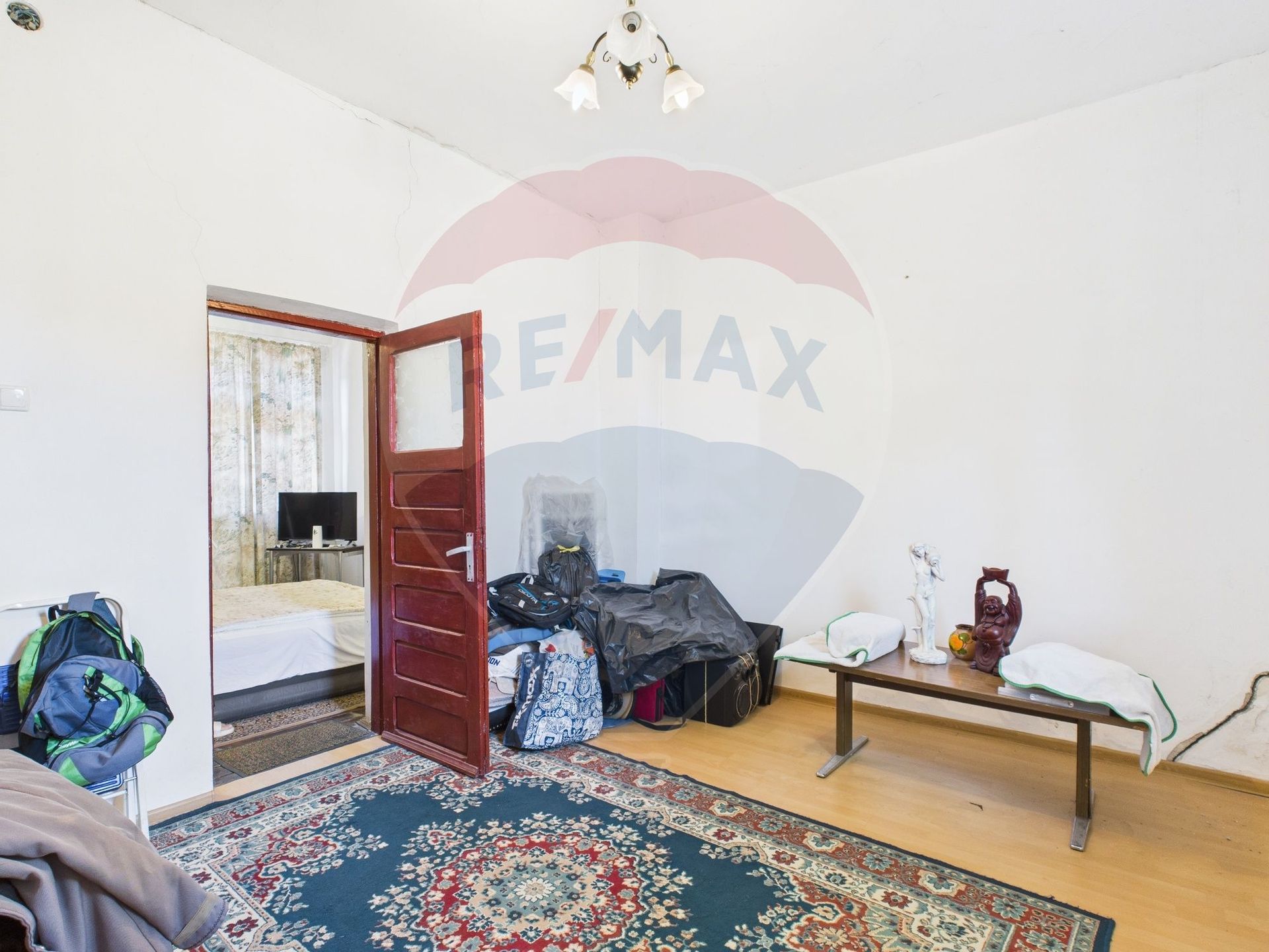 The partitioning of the house includes 3 spacious rooms, and the property is sold together with all the goods and facilities inside.