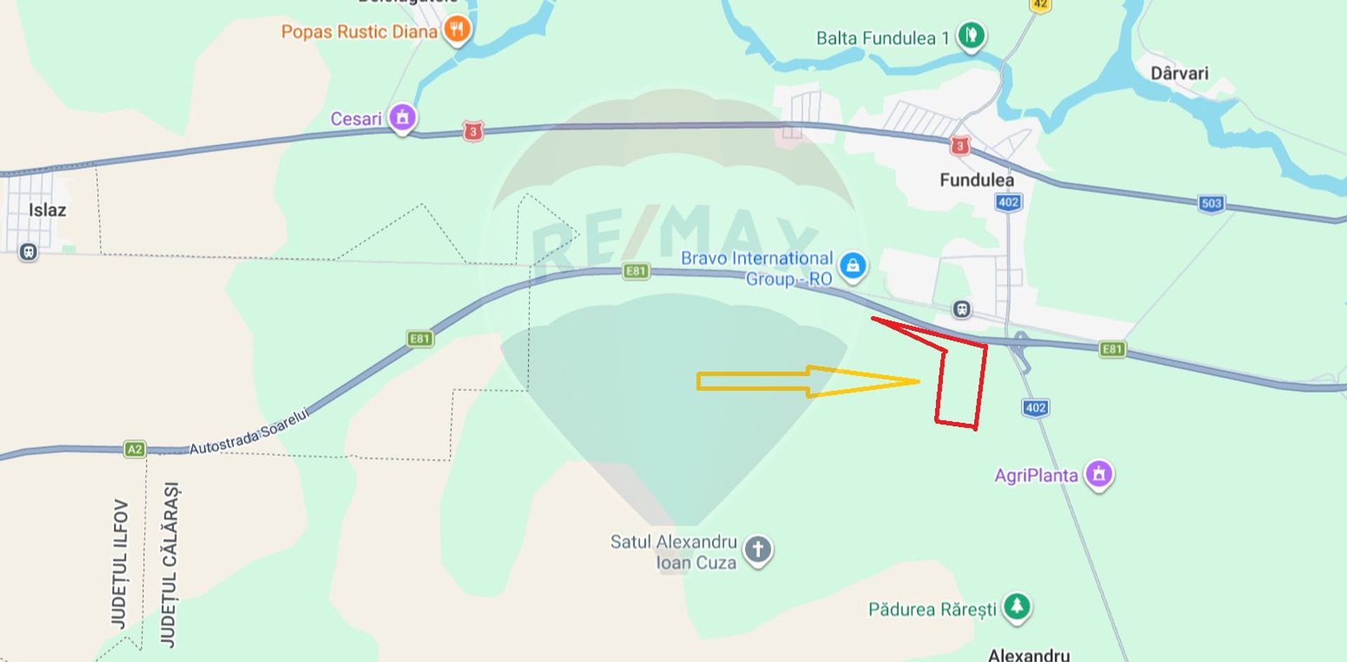 Autostrada Soarelui Km 34 (nod rutier), INCDA Fundulea, Kemcristal SRL, Prosol Agri, Bravo International Group -ROWDP Industrial Park Fundulea, CSF Compania Seminte Fundulea,