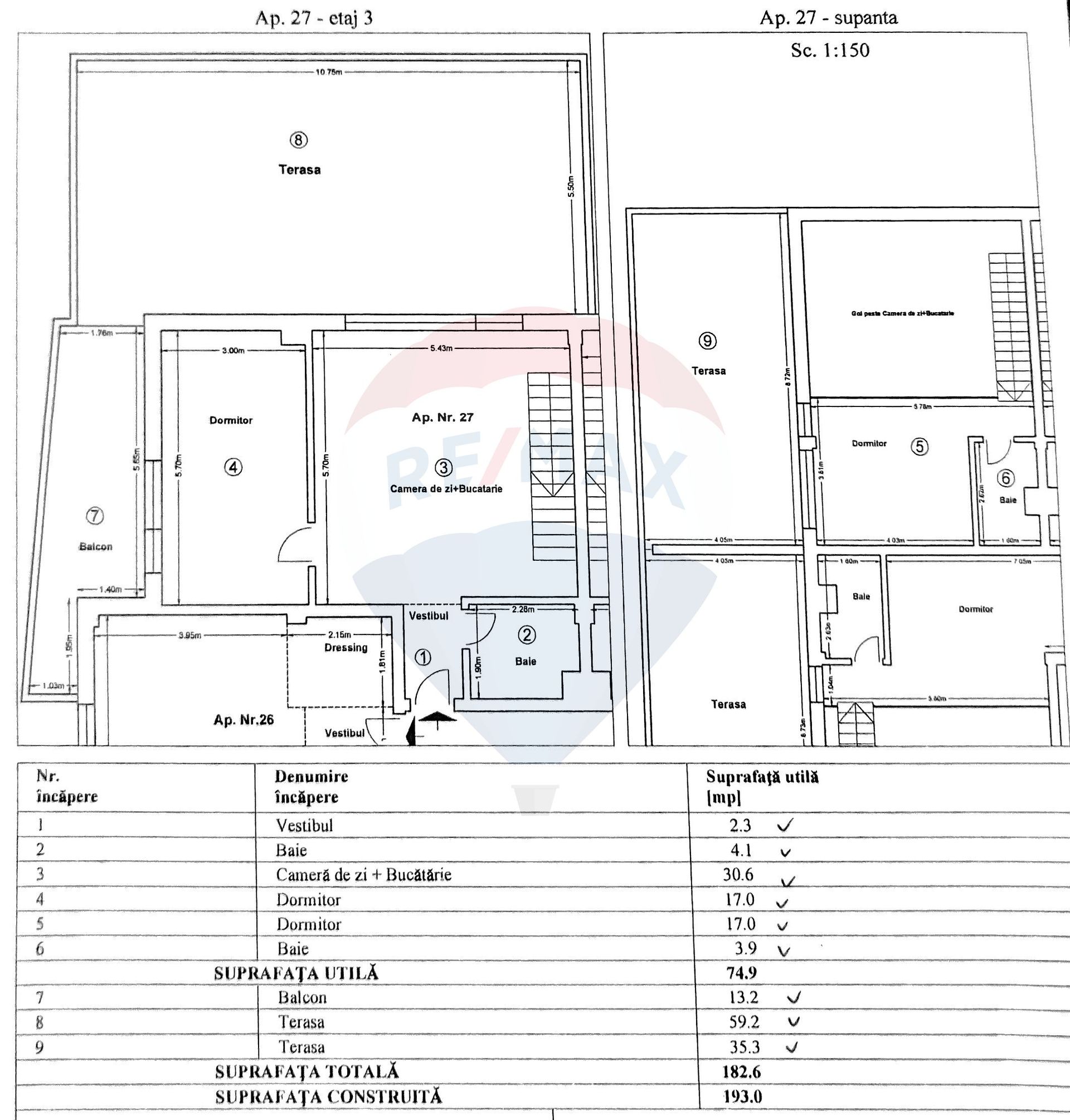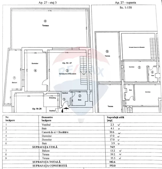 The block completed in 2020 has only three floors, and the apartment occupies the upper level, on two real levels, with a total area of 182.6 sqm. Each day begins and ends with wide views and fresh air, on two terraces totaling 107.7 sqm.