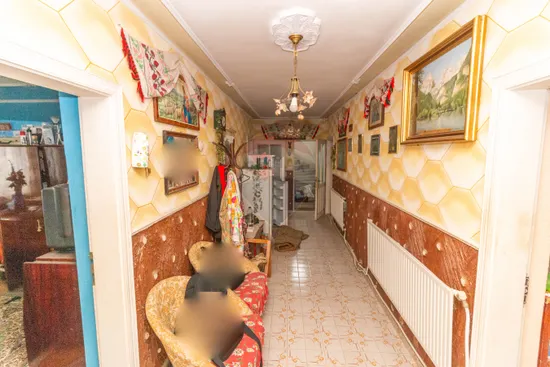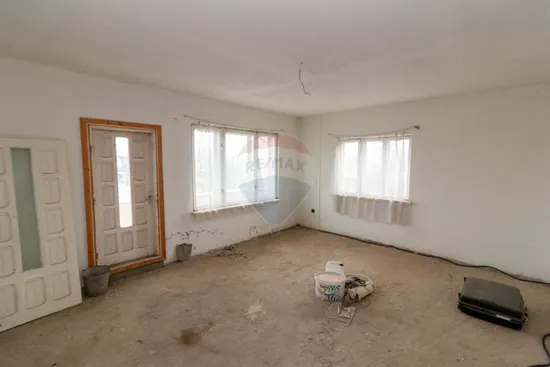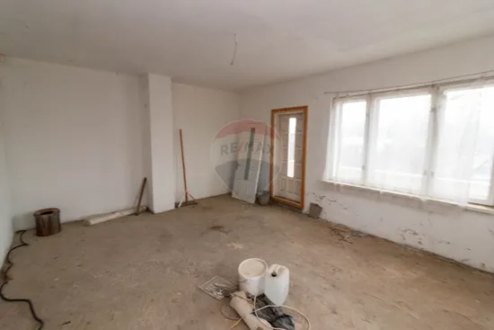 Ground floor – 110 sqm, 3 rooms, Kitchen, Fully equipped bathroom (bathtub, shower, toilet), Additional toilet (current laundry space), Hallway, 3 balconies, 2 separate entrances (front – East and side – South), Access via concrete staircase with closed balcony