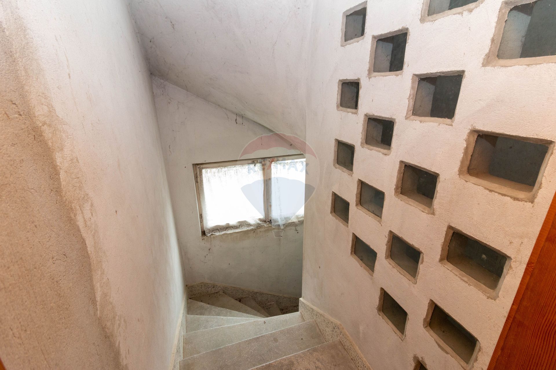 - Interior concrete staircase, cast, with mosaic finish