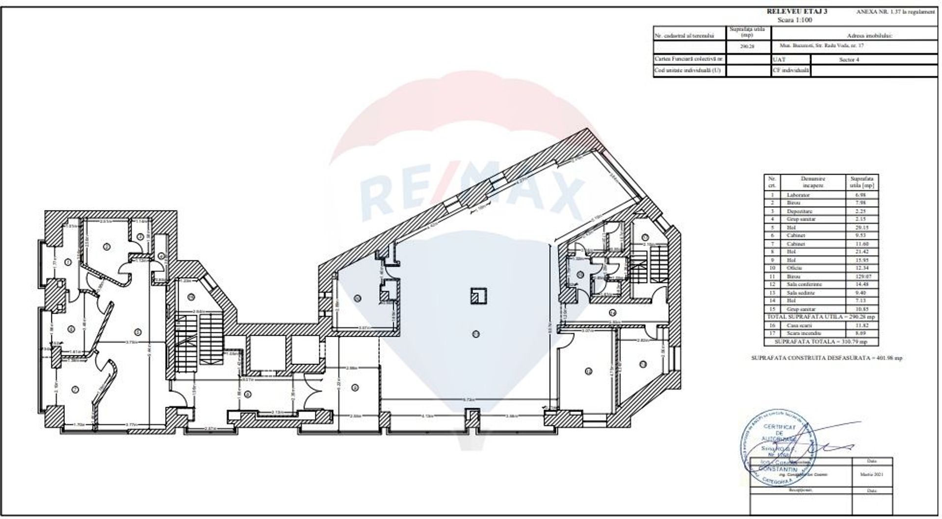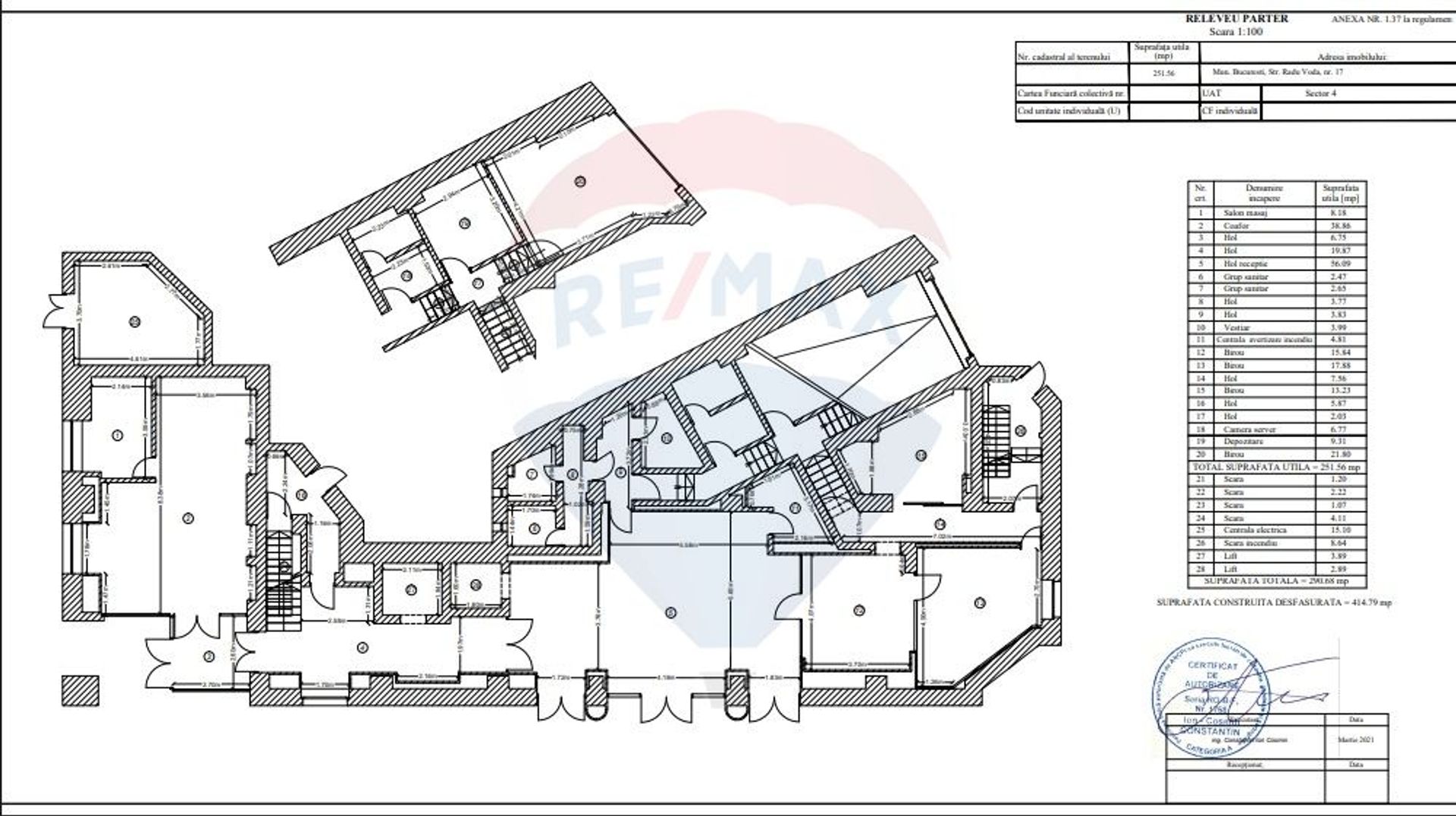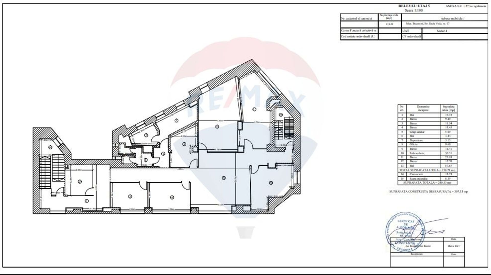 Office building BASEMENT-GROUND FLOOR-5 FLOORS AND TERRACE, located in the Unirii area, about 2 minutes walk from the Dimitrie Cantemir metro station. The building has easy access to the main arteries of the city and benefits from public transport in the immediate vicinity.