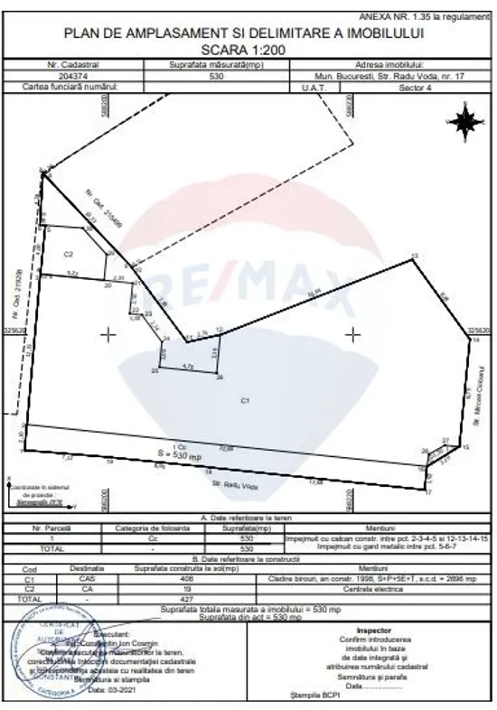 The construction was carried out in 1998, has a total area of 2200sqm and is located on a plot of land with an area of 530 sqm, with a footprint of 408 sqm.