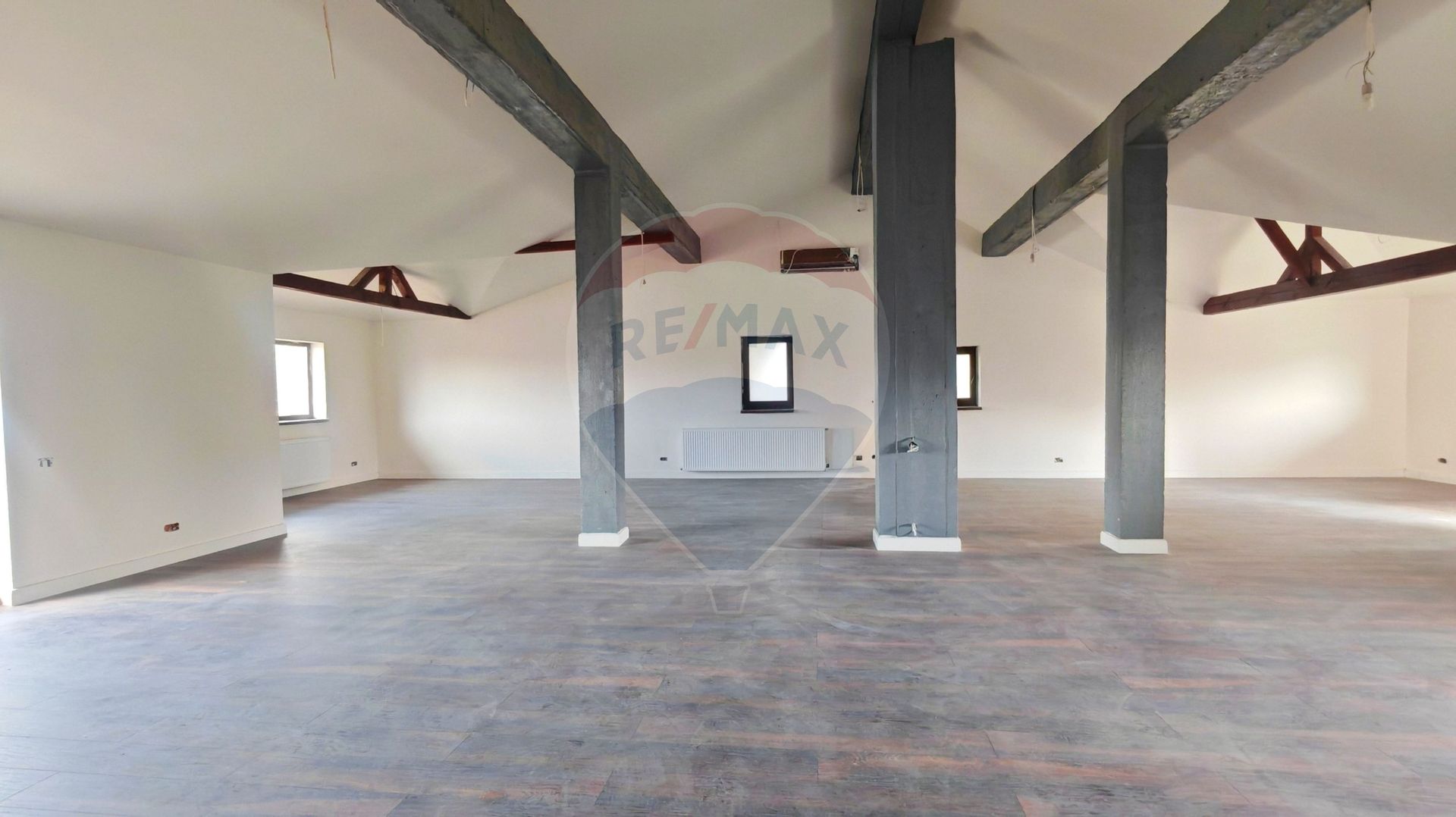 The first unit, arranged on the ground floor and upstairs, is composed on the ground floor of a generous living and dining area, fully furnished and equipped open kitchen, office, bathroom, pantry and technical room. Upstairs there are three bedrooms, of which the master bedroom benefits from a dressing room and its own bathroom, another bathroom in the hallway, as well as a versatile room of approximately 114 sqm, which can be arranged according to needs, as a cinema room, relaxation area, gym, hobby space, open-space office, studio or even compartmentalized into additional rooms.