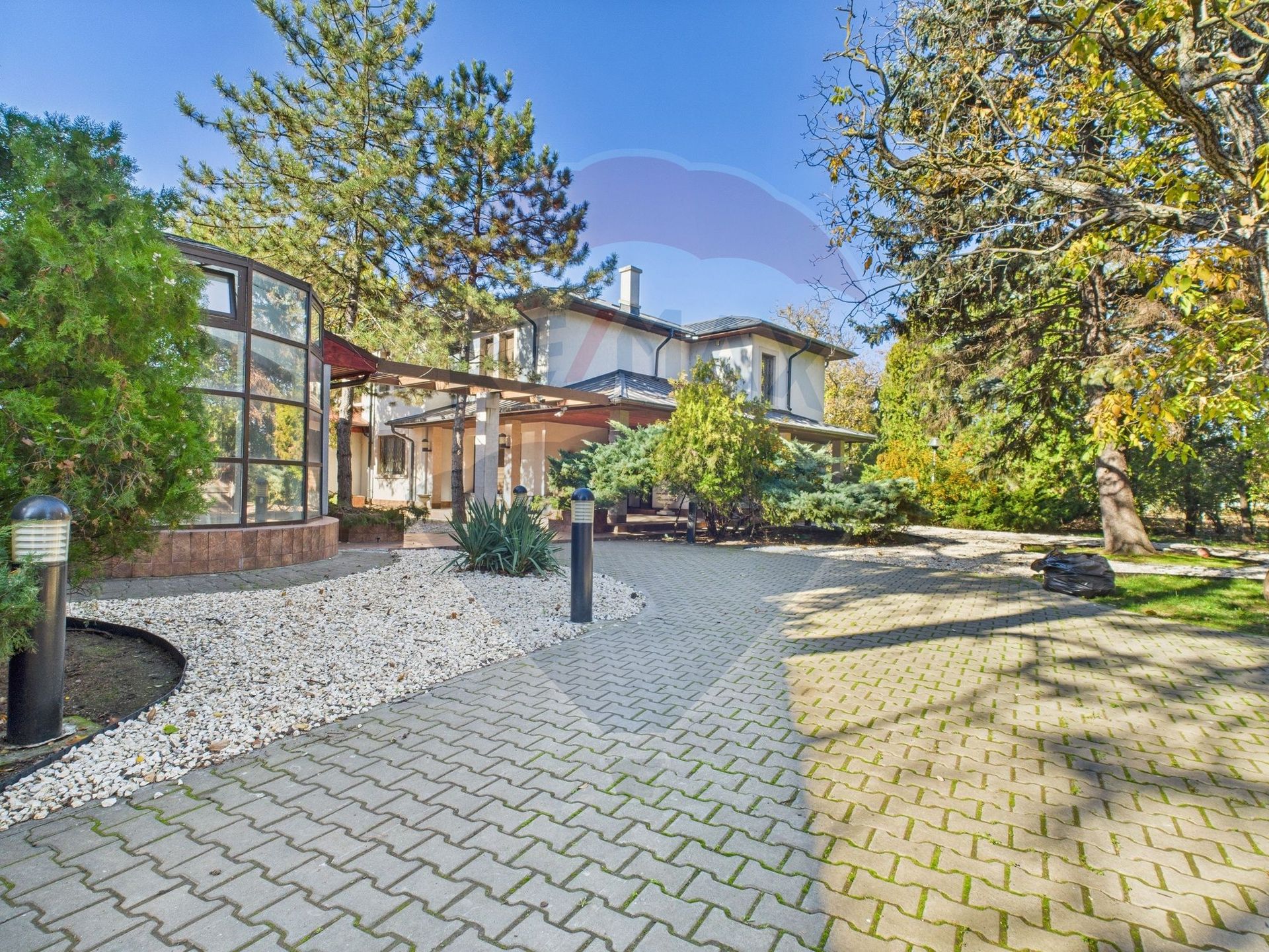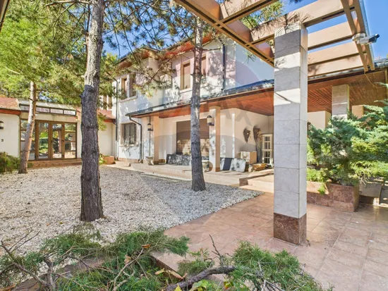 The usable area of the residence is 625 sqm, harmoniously developed on the ground floor and first floor, surrounded by a superb plot of over 5,000 sqm, a real private botanical garden, with fruit trees, mature vegetation and outdoor relaxation spaces.