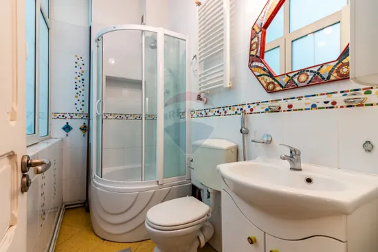 The location is secluded from the urban noise, on Intrarea Amzei no. 6. The apartment is fully furnished and equipped, consisting of a generous living room with exit to a chic balcony, 2 bedrooms, one of which is a double with its own bathroom and an attic that can be your place to relax or you can arrange a guest room.