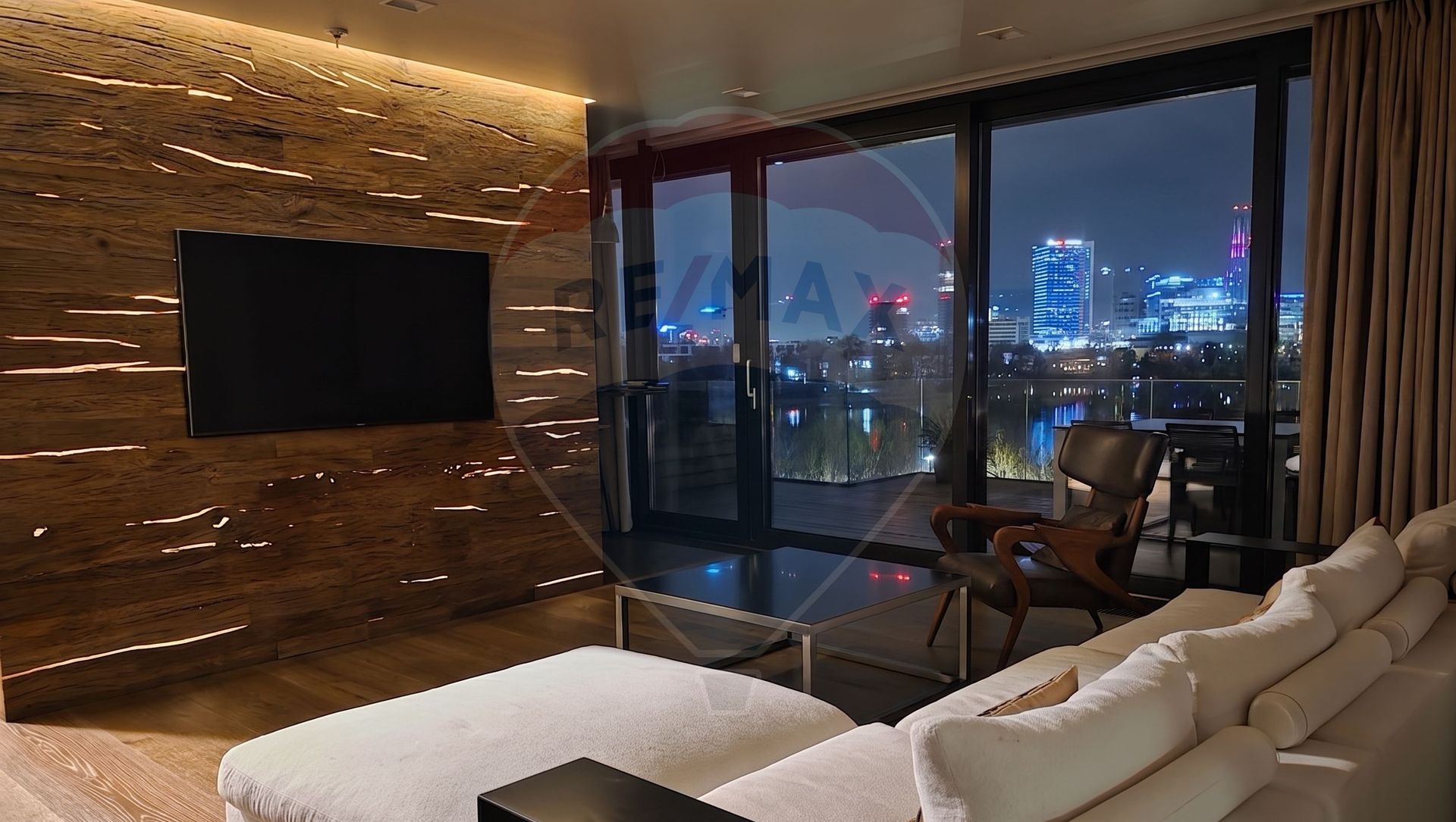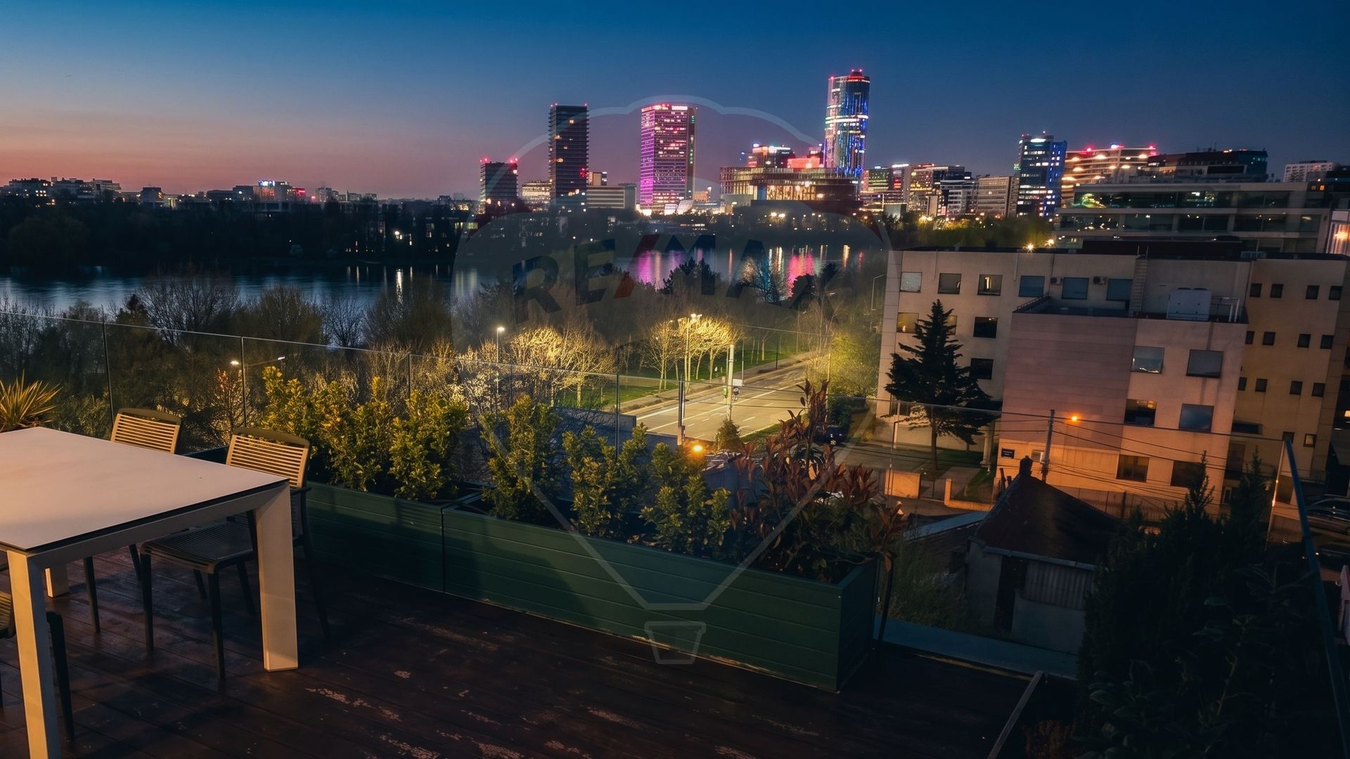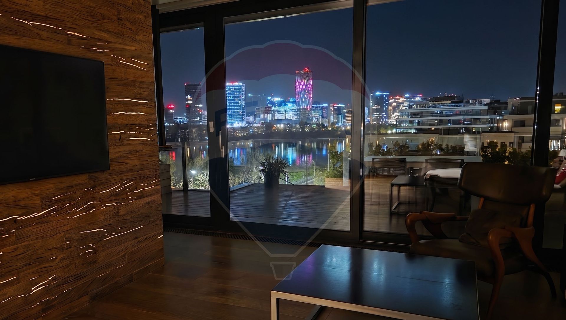 The property occupies entirely the top floor of a boutique building of only 9 units, completed in 2015. The 5th floor belongs completely to you: 95 sqm of living space, plus 63 sqm of panoramic terraces. There is no neighbor on top, there is no neighbor on the same level. There is only the view: Floreasca Lake, the north of the capital, the silhouettes of One at sunset.