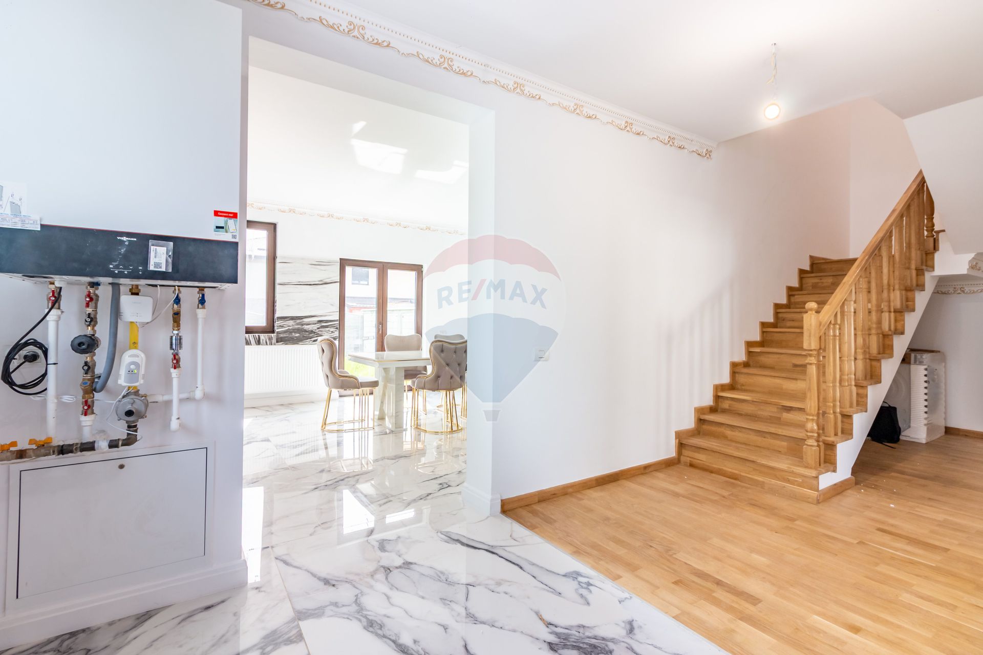 The finishes are of high quality, with an emphasis on elegance and durability, including marble-type tiles, fine decorative details and modern furniture partially included in the price. The kitchen is equipped with appliances, and the entire house is ready for immediate use. Thermal comfort is ensured by its own condensing boiler and heating system with radiators, and PVC joinery with double glazing contributes to energy efficiency and sound insulation.